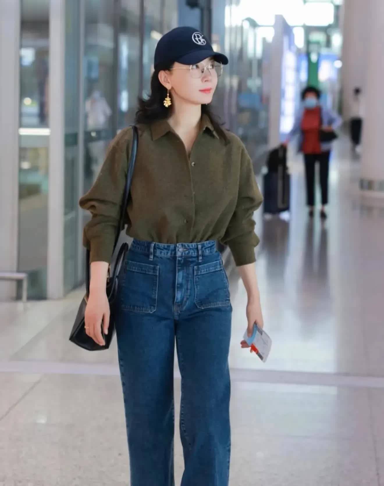 衬衫的质感很大程度体现在面料上,陈数挑选的这款橄榄绿色衬衫,看上去颇为硬朗,适合早春早晚微凉时穿着,单穿也极具时尚感!而且这种橄榄绿对于皮肤白皙的人而言,更能凸显白皙水润。